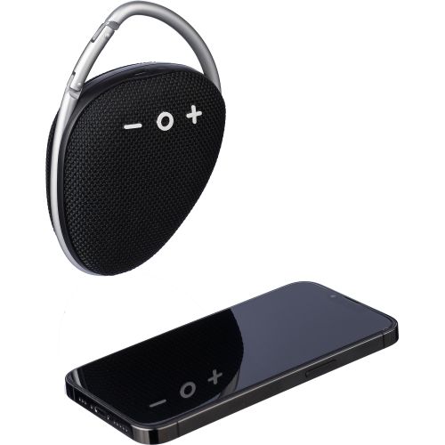 ABS outdoor speaker with carrying cord. 5W output, DC 5V input, 800mAh built-in rechargeable battery, and 3.5 hours of playing time. Working distance of 15-20 meters, signal-to-noise ratio of 75 dB. Frequency range: 100 Hz to 20 kHz. Includes 30 cm Type-C charging cable. Wireless connection technology: 4.2. Individually packaged in a brown cardboard box.