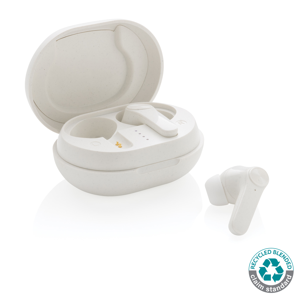 TWS earbuds where the the earbud and the charging case are made out of RCS certified recycled ABS plastic. RCS (Recycled Claim Standard) is a standard to verify the recycled content of a product throughout the whole supply chain. RCS is the standard that is used when a part of the item has been made from recycled materials. The wireless headphone uses BT 5.0 for super smooth connection and long lasting play-time. The 40 mah battery allows a play time up to 4 hours and can be fully re-charged in the 300 mah charging case in 1,5 hours. Operating distance up to 10 metres. With mic and touch pick up function. Item and accessories PVC free. Including PVC free recycled TPE material charging cable.
