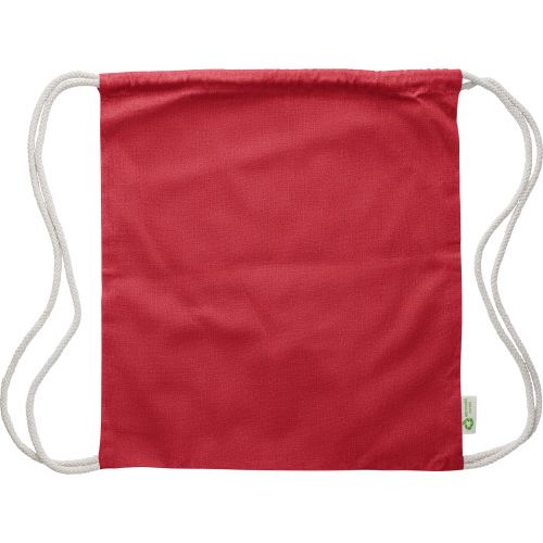 | Description | Recycled cotton drawstring bag in solid color. Solid strings and reinforced corners. Made from 100% recycled cotton. |