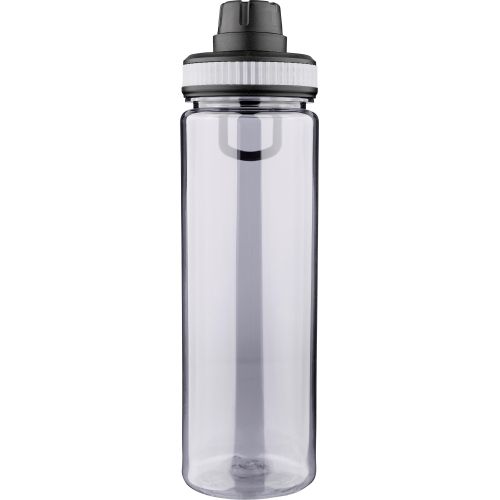 | Description | rPET drinking bottle (750 ml) with PP lid featuring a carrying handle and screw cap. Includes a colored silicone detail in the lid, matched to the transparent bottle body. |
