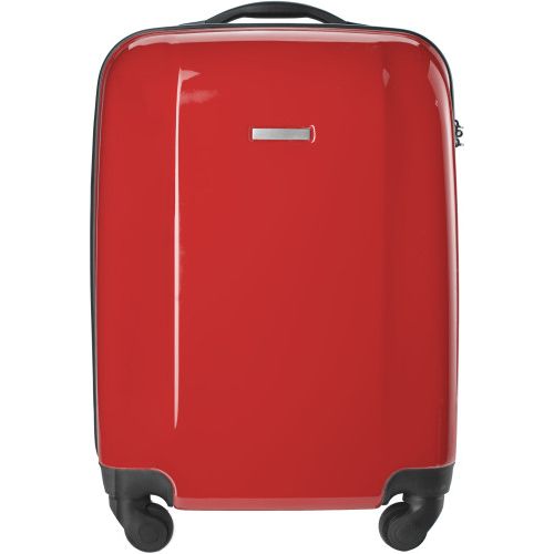 PC/ABS hard case trolley with four wheels, extendable handle, and integrated number lock. Includes metal plate for engraving purposes.