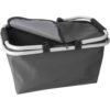 Polyester (320-330 gr/m²) collapsible shopping basket, with an aluminium frame and handles with EVA foam grip; can be closed at the top with a zipper.